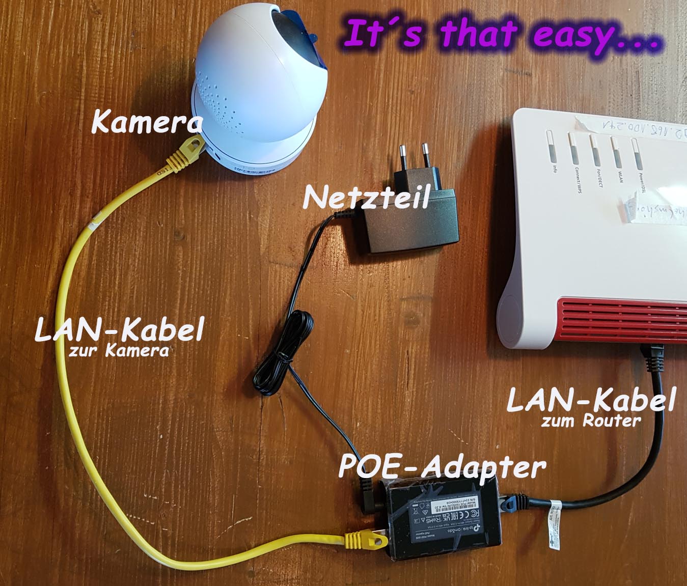 ...eine Netzteil (PoE=Power-over-Ethernet) für die Stromversorgung ab ca. 12,00 Euro
